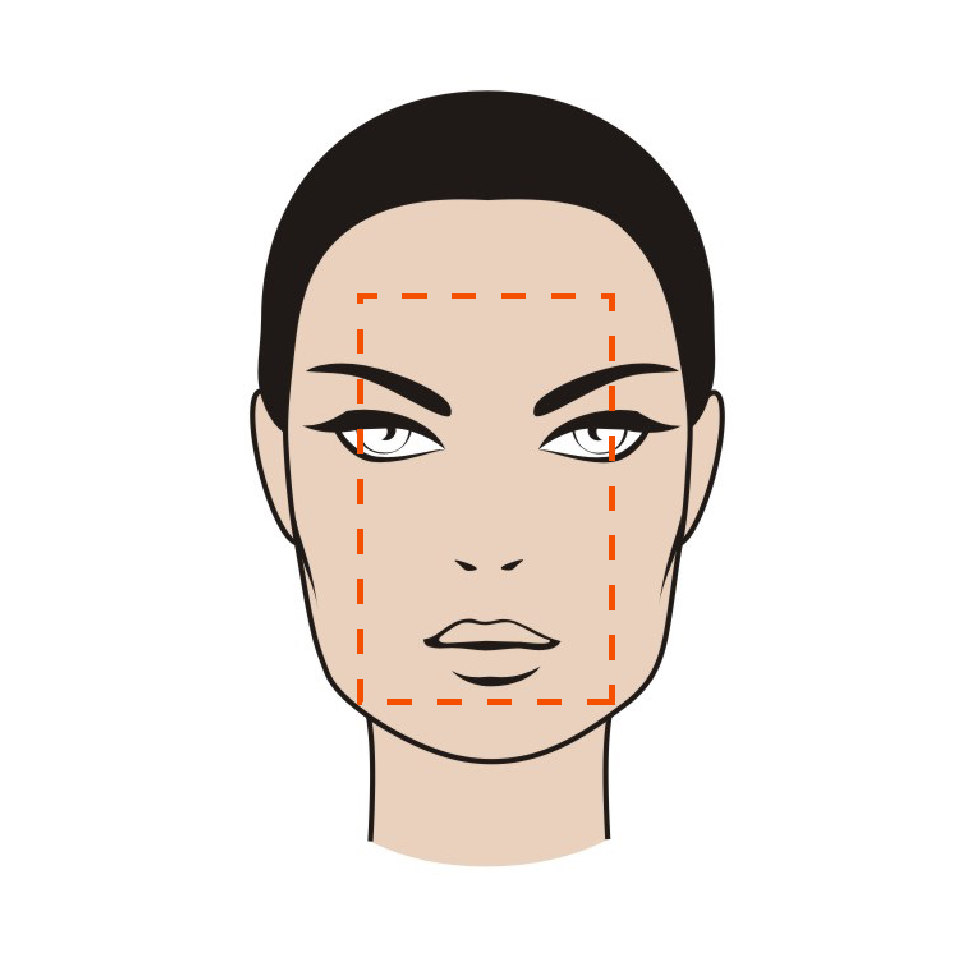 En este rostro la frente es larga y estrecha, los pómulos altos, la mandíbula estrecha y la barbilla alargada. Lo óptimo es ensanchar y reducir.